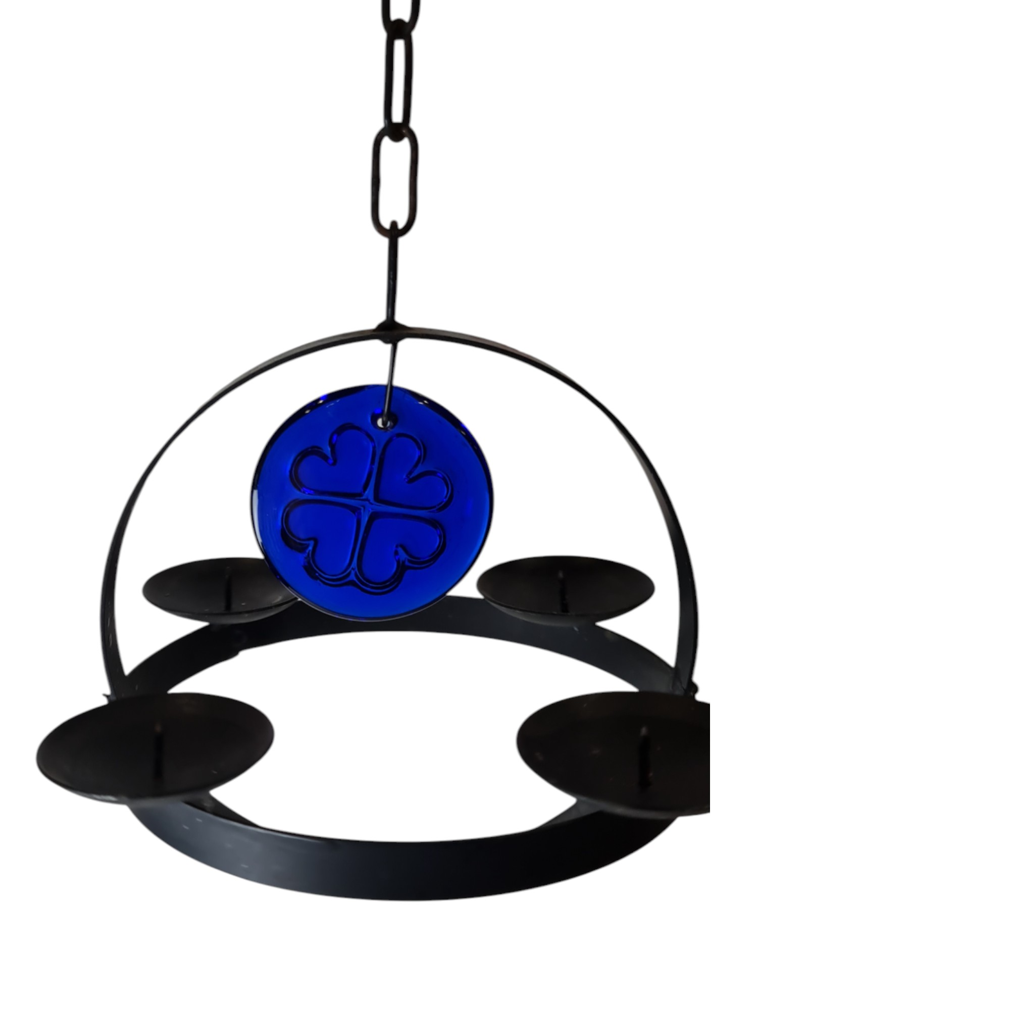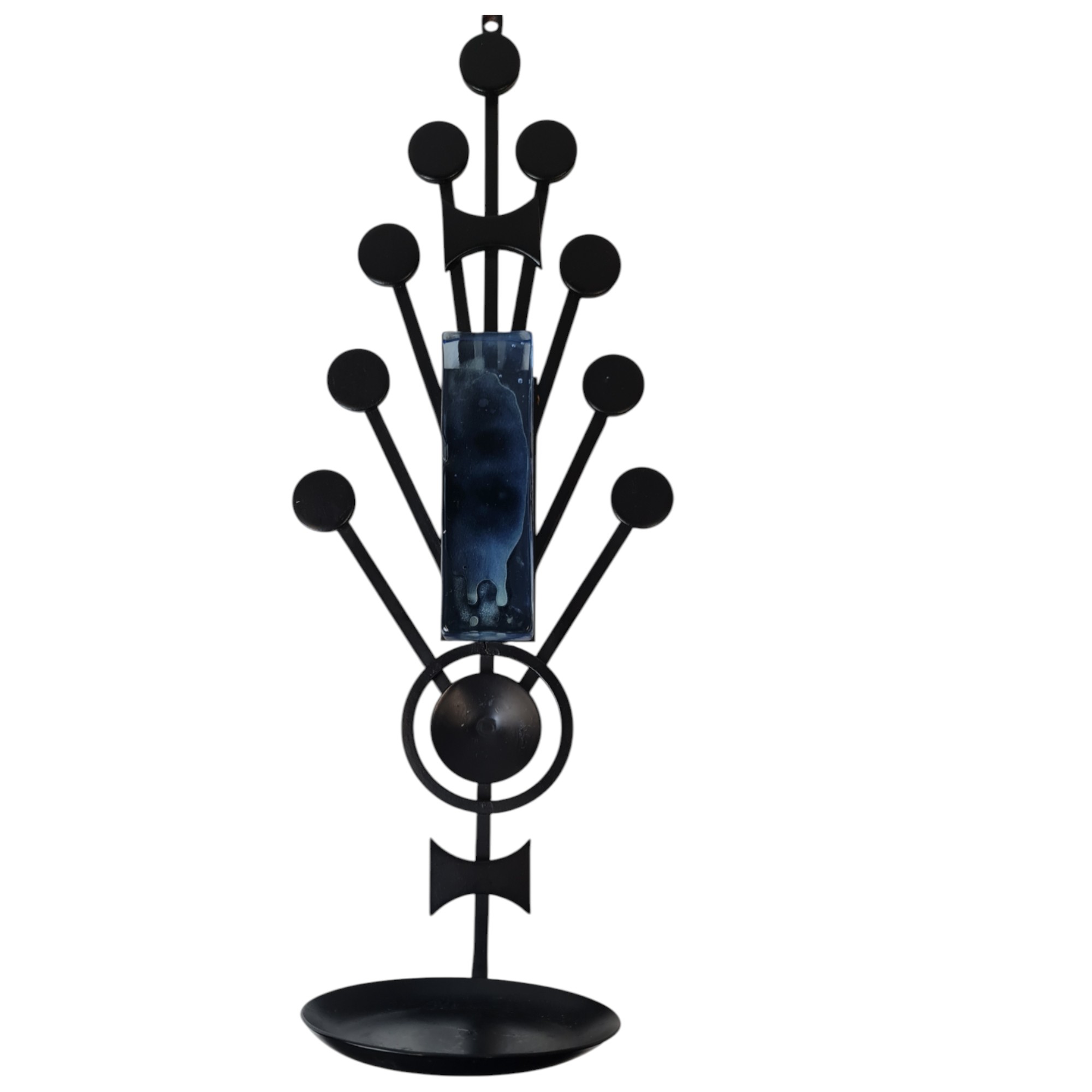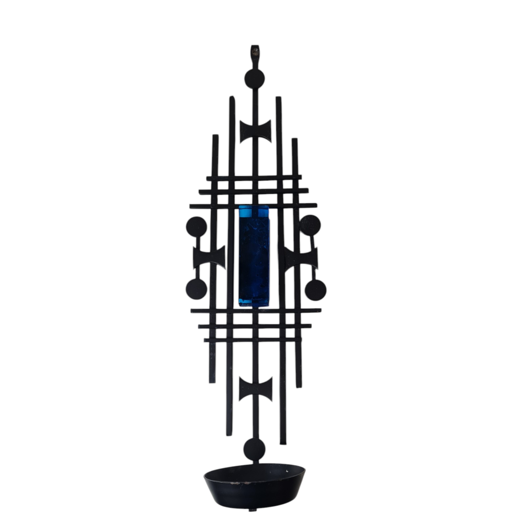 Væghængt lysestage | Dantoft | Sortlakeret jern og blåt glas