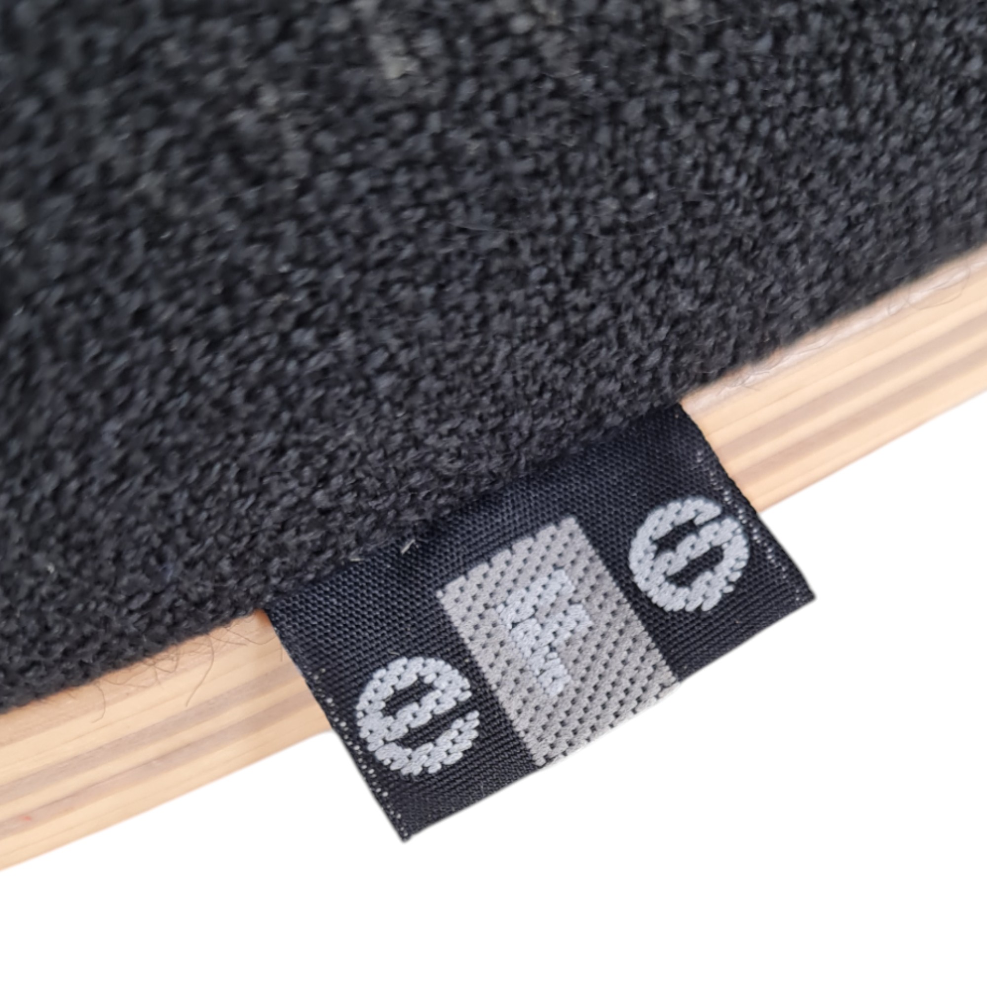 Udført i lamineret bøg og forside polstret i sort uld.