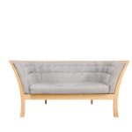 Lille fin og enkel 2 personers sofa udført med stel i bøg og betrukket med en eksklusiv støvet grøn alcantara hynde.