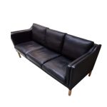 3 Personers sofa | Dansk design | Sort savoy læder og ben i bøg