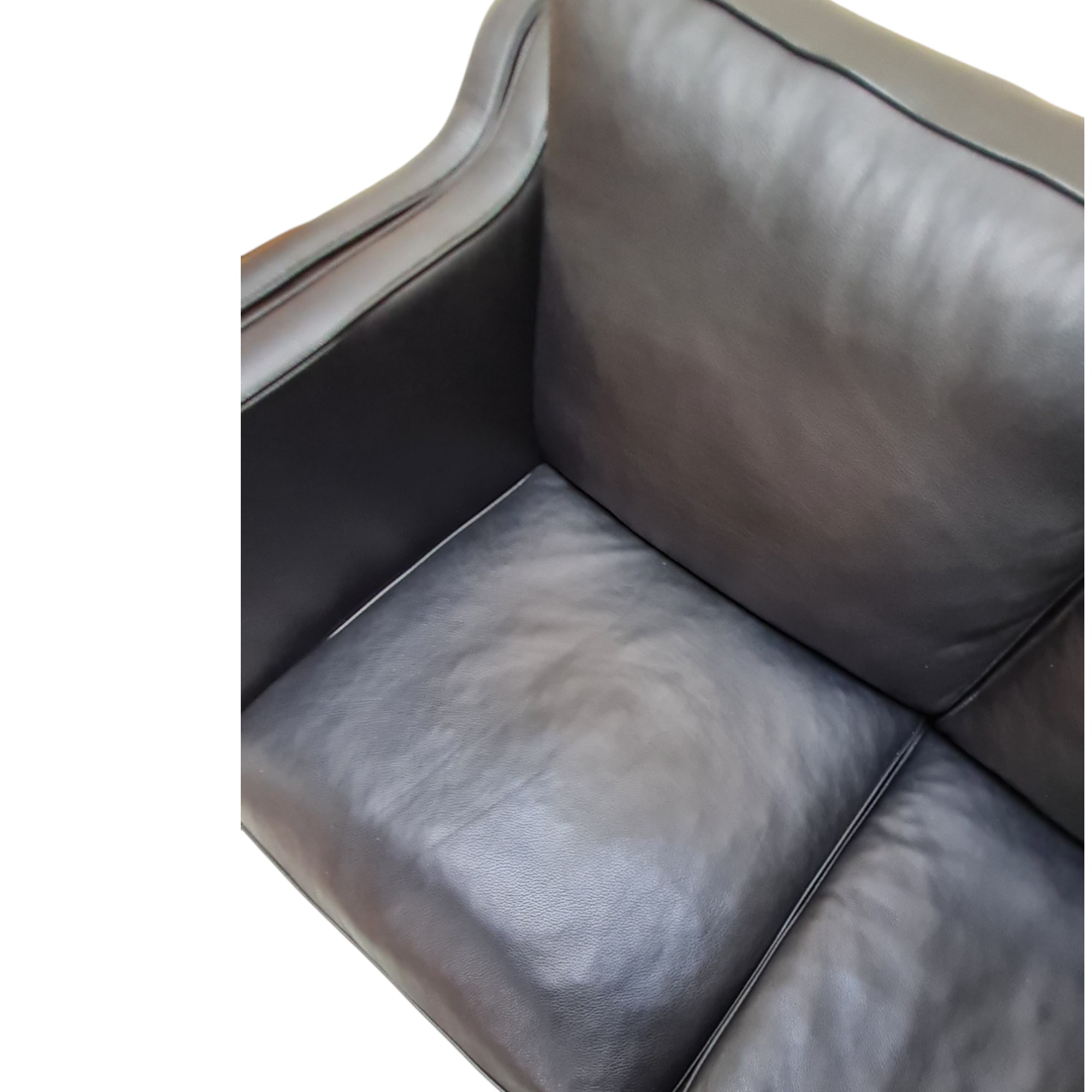 Klassisk og komfortabel 3-personers sofa i dansk design fra 1980’erne. Sofaen er udført i sort læder med ben i massiv bøg og byder på både solid kvalitet og tidløs æstetik.