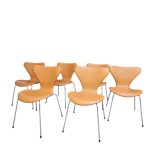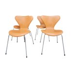 4 Spisebordsstole model 3107 | Arne Jacobsen | Fritz Hansen | Nougatfarvet læder
