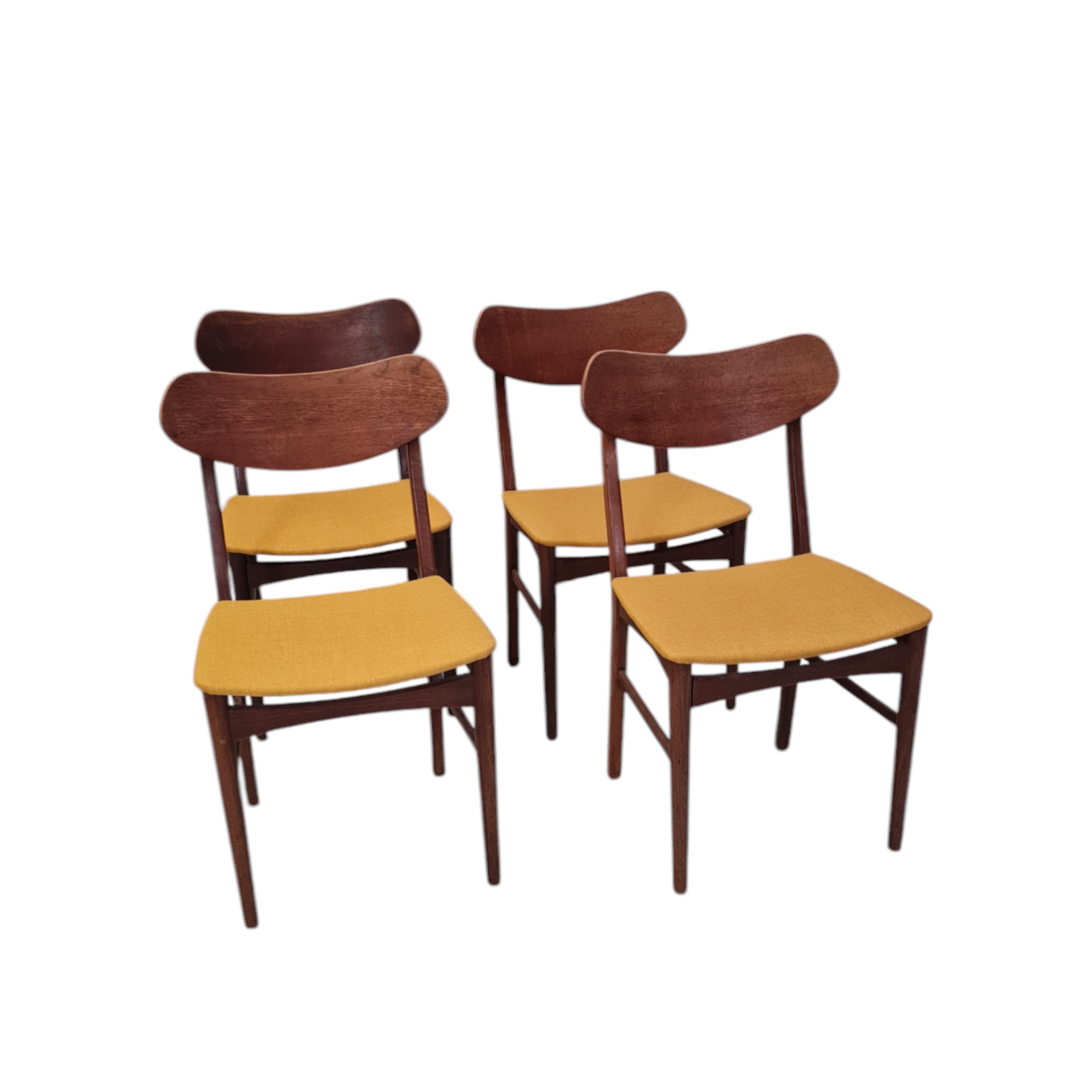 4 Spisebordsstole | Dansk design | Teak og gul uld