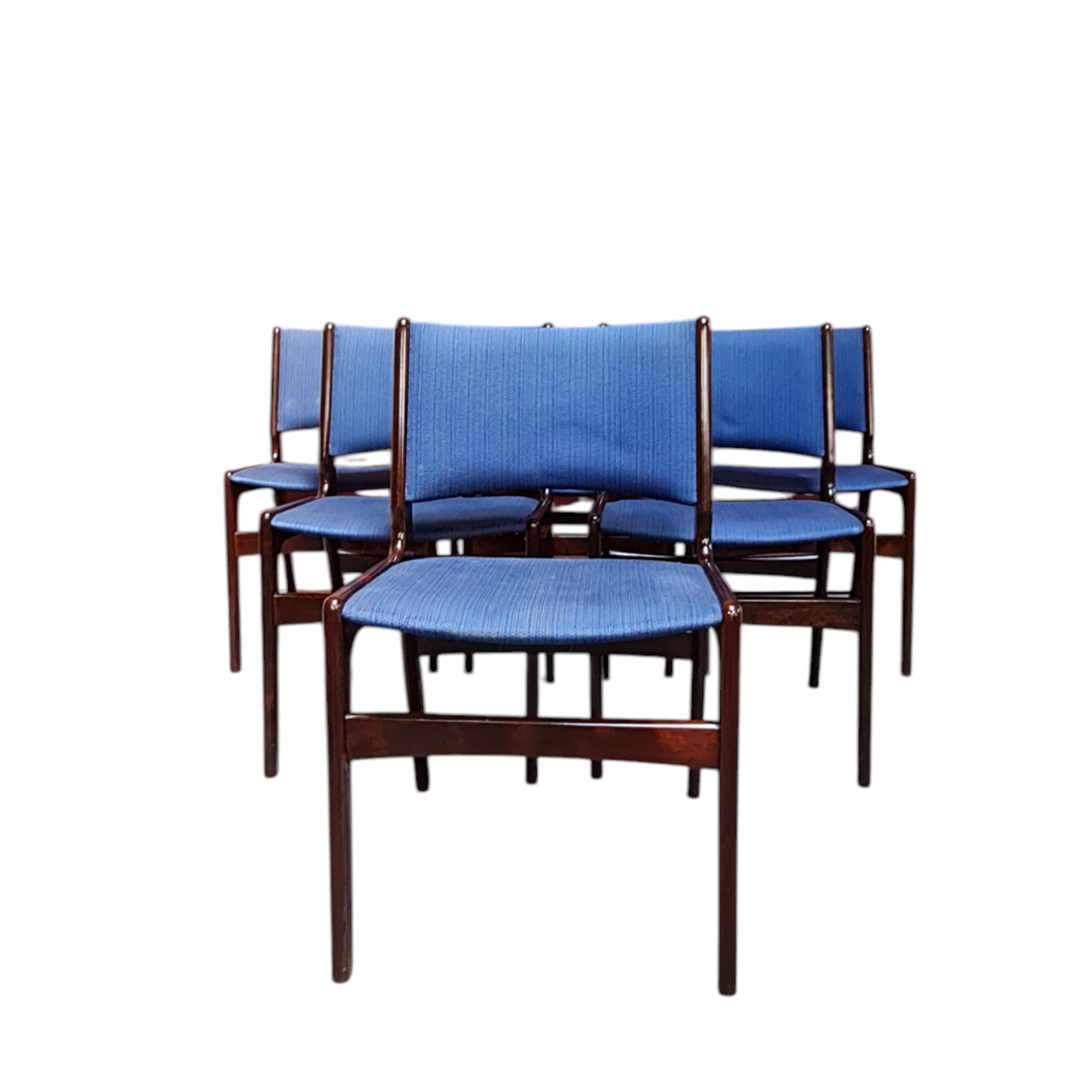 6 Spisebordsstole model 89 | Erik Buch | Anderstrup Møbelfabrik | Palisander & blå uld