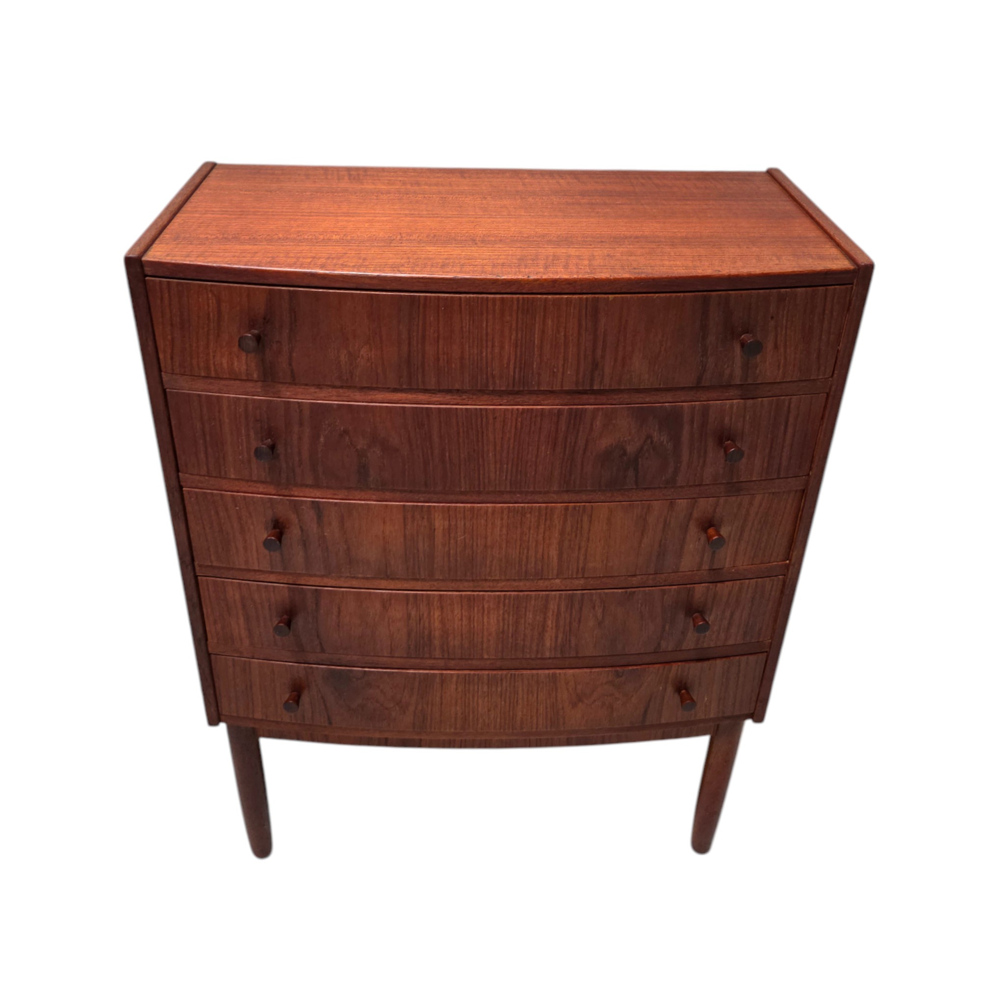 Kommode med 5 skuffer og svagt buet front | Dansk design | Teak