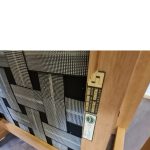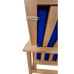 Udført i lakeret bøg med en komfortabel hynde betrukket med mørkeblå uld. Den fremstår i pæn stand med almindelige, aldersrelaterede brugsspor såsom små ridser og mærker – en stol med karakter og historie.