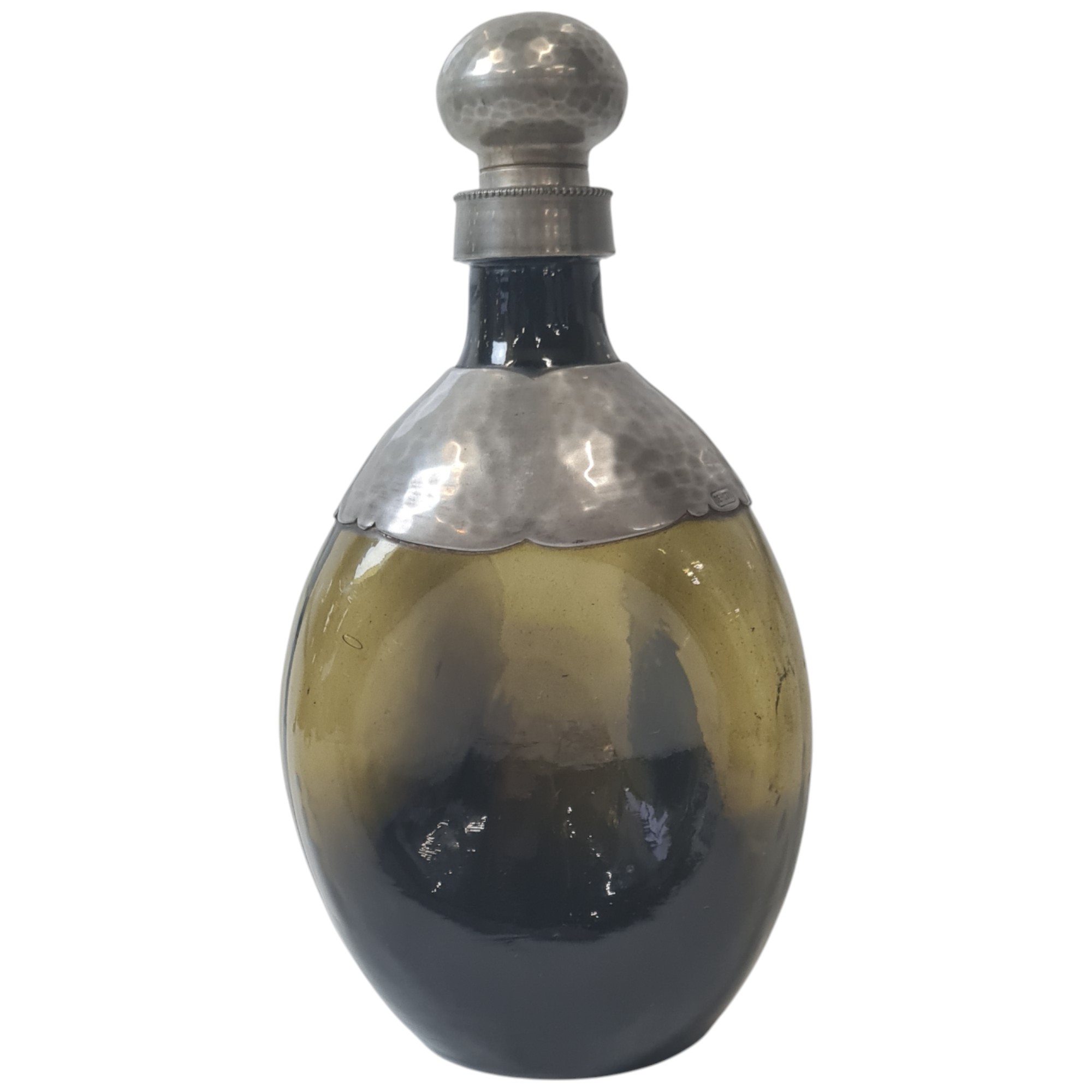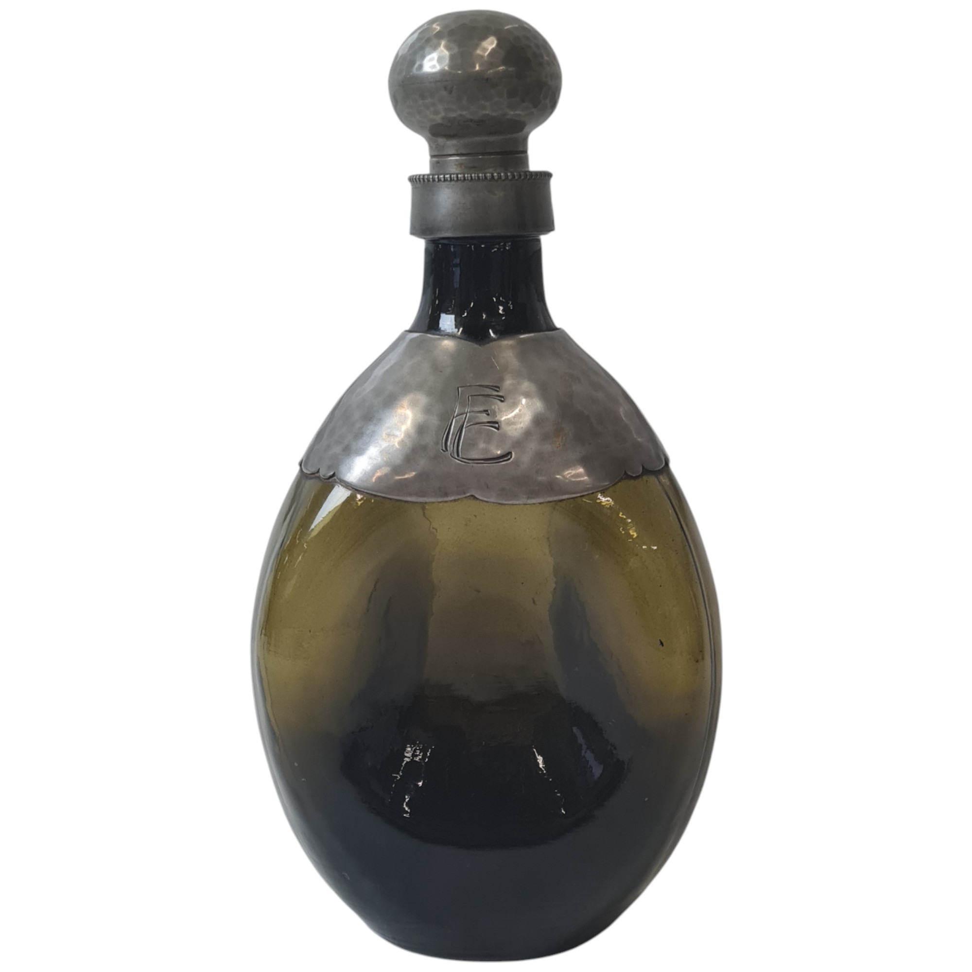 Brunlig flaske med tinmontering i Art Nouveau stil.