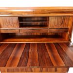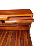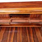 Utrolig flot og elegant chatol med tre store skuffer, en praktisk udtræksplade, tre små skuffer og tre rum med skydelåger samt to ekstra skuffer i toppen. Chatolens eksklusive detaljer og den smukke, flammende palisanderfinér gør den både funktionel og dekorativ. Den fremstår i pæn stand med almindelige aldersrelaterede brugsspor som små ridser og mærker.