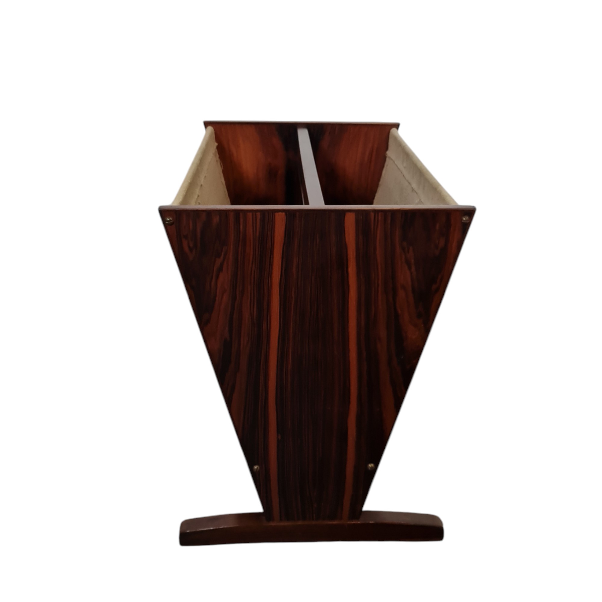 Udført i smukt palisander (Dalbergia Latifolia) med lærred, hvilket giver et elegant og tidstypisk udtryk. Et dekorativt og funktionelt møbel, der både kan bruges til magasiner og bøger, og som tilfører hjemmet charme og personlighed.