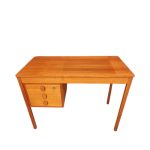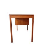 elegant og enkelt dameskrivebord med tre skuffer, Bordet er udført i teak og fremstillet hos en dansk møbelproducent i 1960’erne.