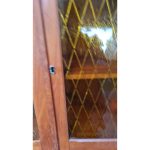 Fint og funktionel hjørneskab i dansk design fra 1950’erne, udført i fineret teak og udstyret med smukke blyindfattede glasruder. Skabet er monteret på runde, tilspidsede ben og fremstår som et dekorativt og praktisk møbel med masser af personlighed.