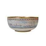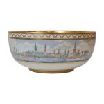 Kgl. Porcelæn jubilæumsbowle “Den Kongelige Porcelænsfabrik 1775-1975”. Dekoreret i farver og guld med motiver fra Københavns historie, udført i et samarbejde mellem Sven Vestergaard og Finn Clausen.