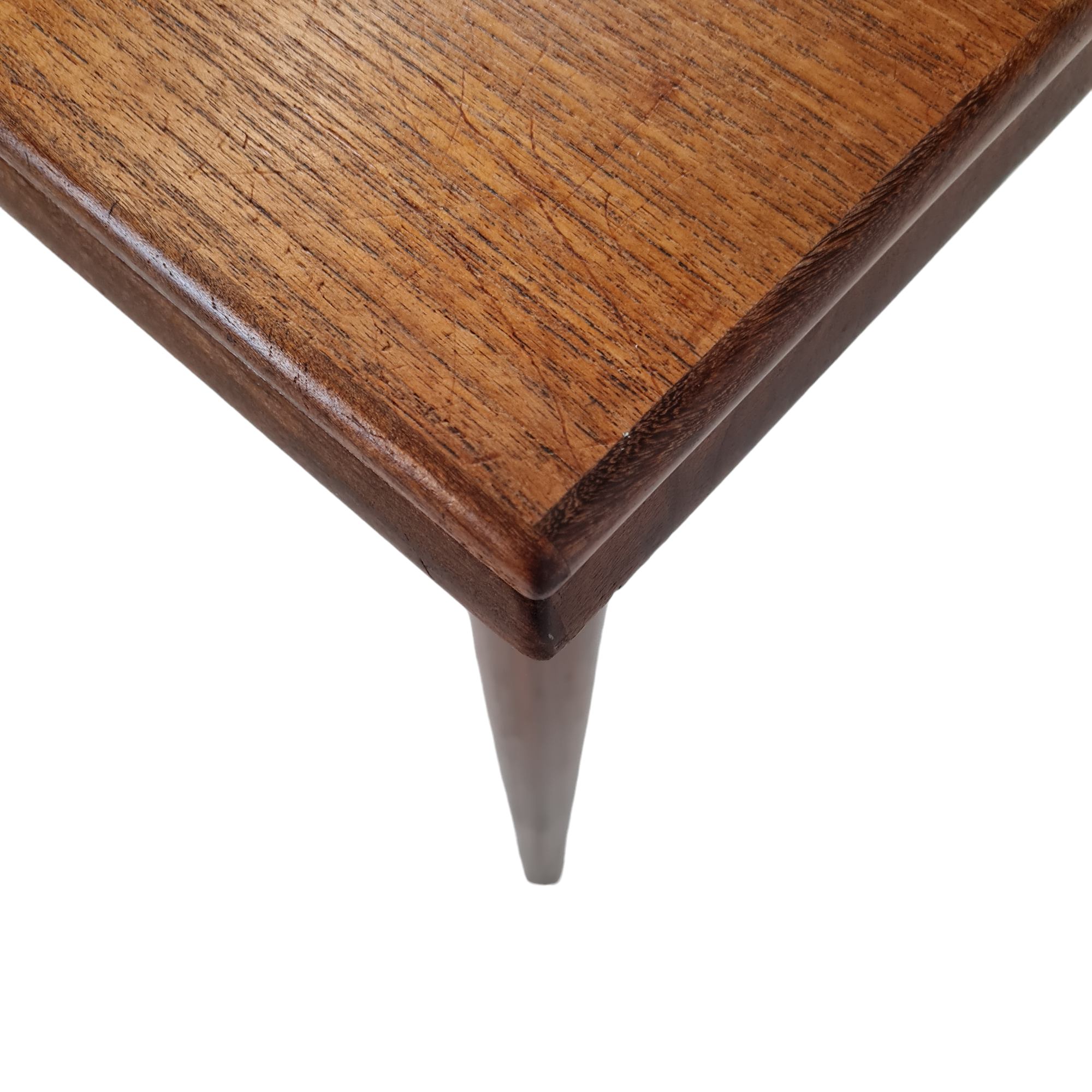 - Udført i fineret teak med tilspidsede ben i massiv teak.