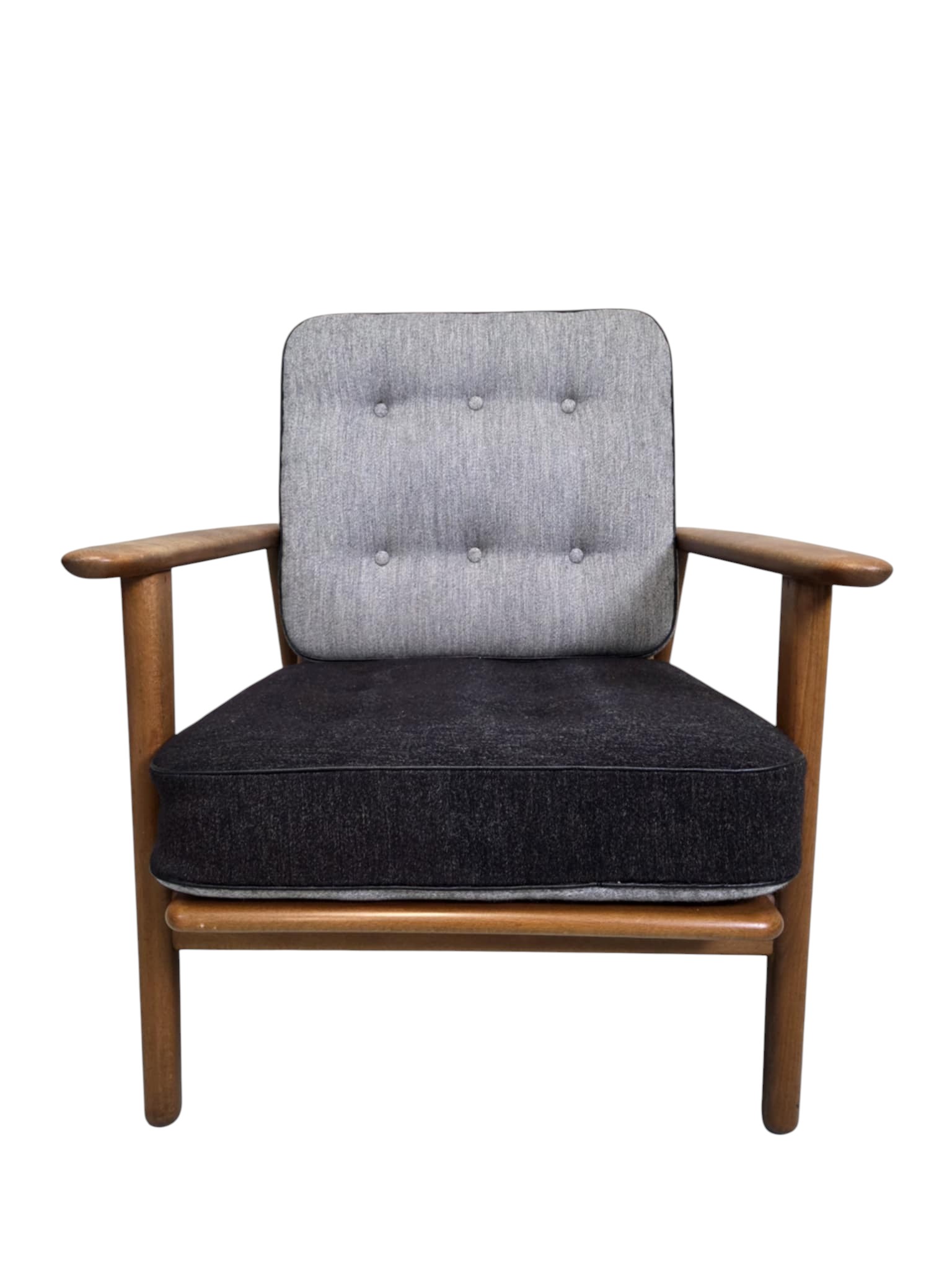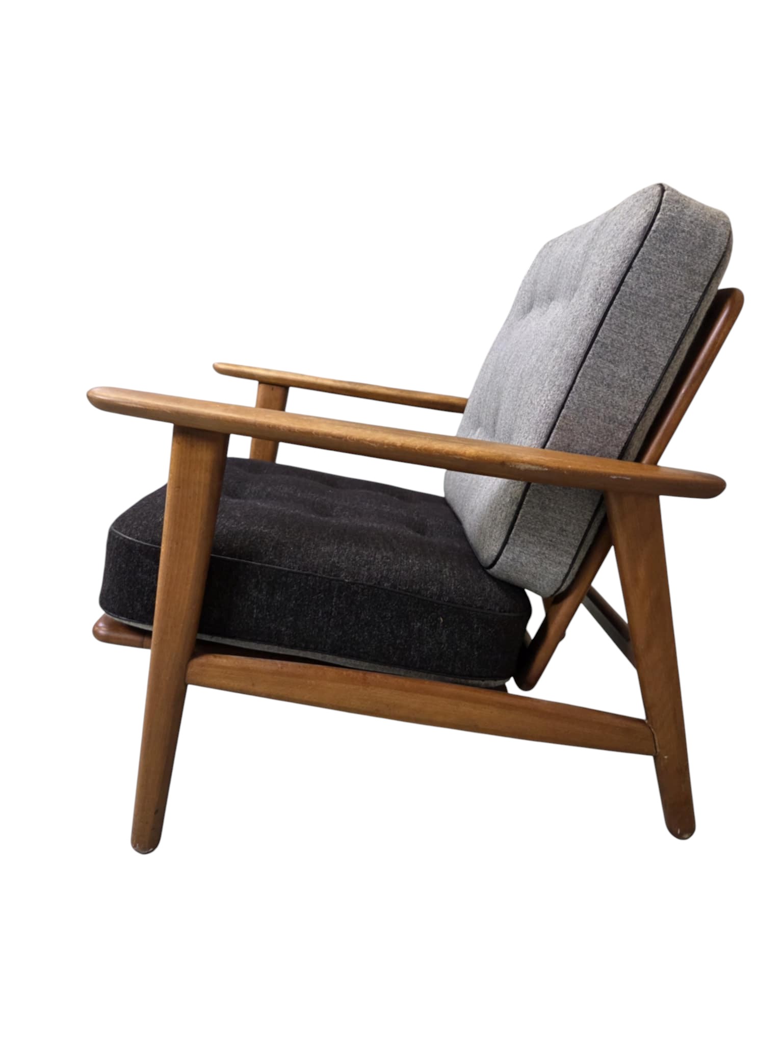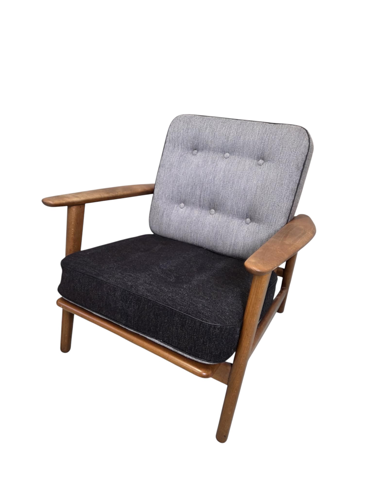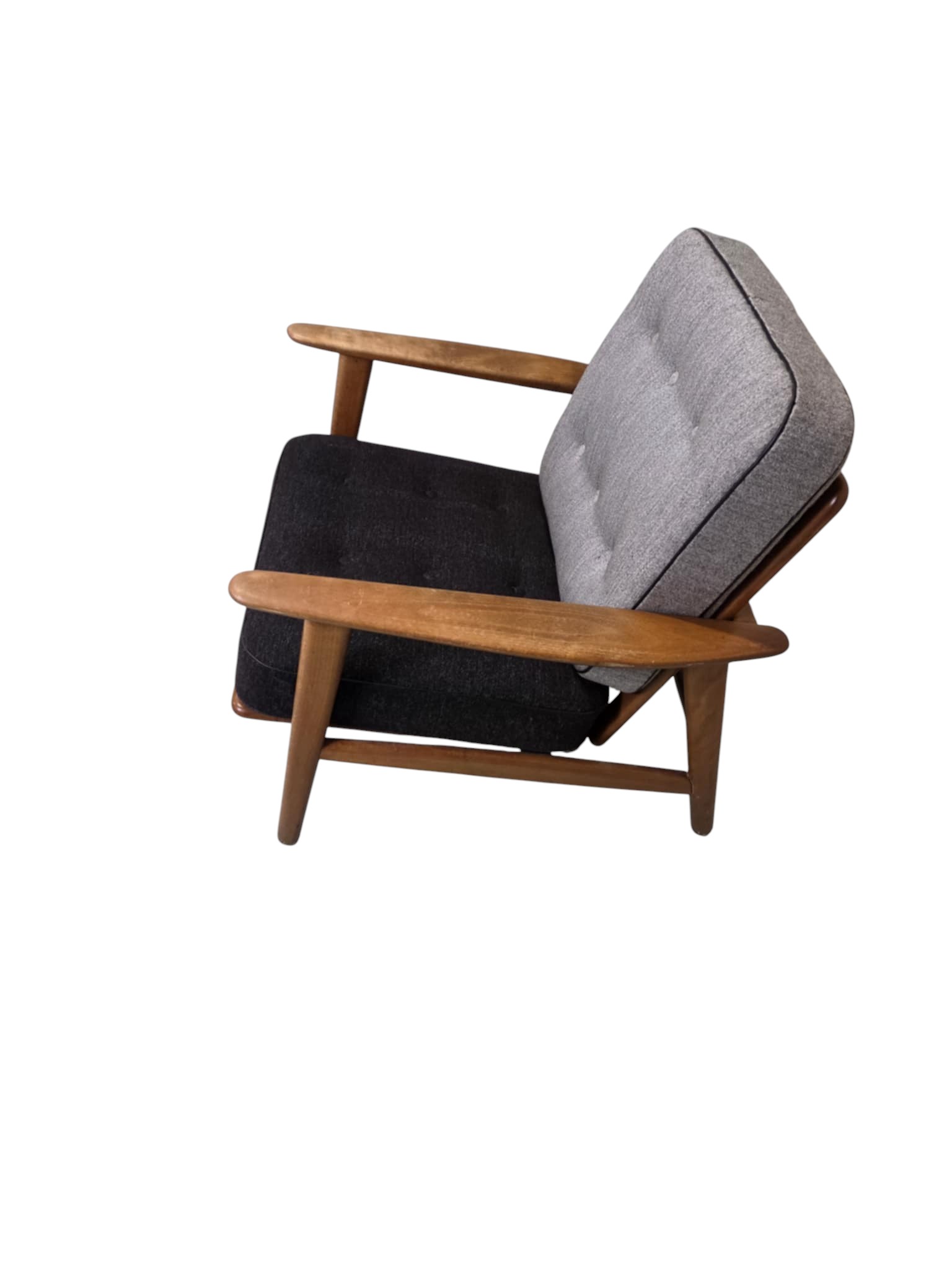 Lænestol model GE 240 “Cigaren” som blev formgivet 1955 og og produceret af Getama. Den er udført i teak med løse hynder i uld.