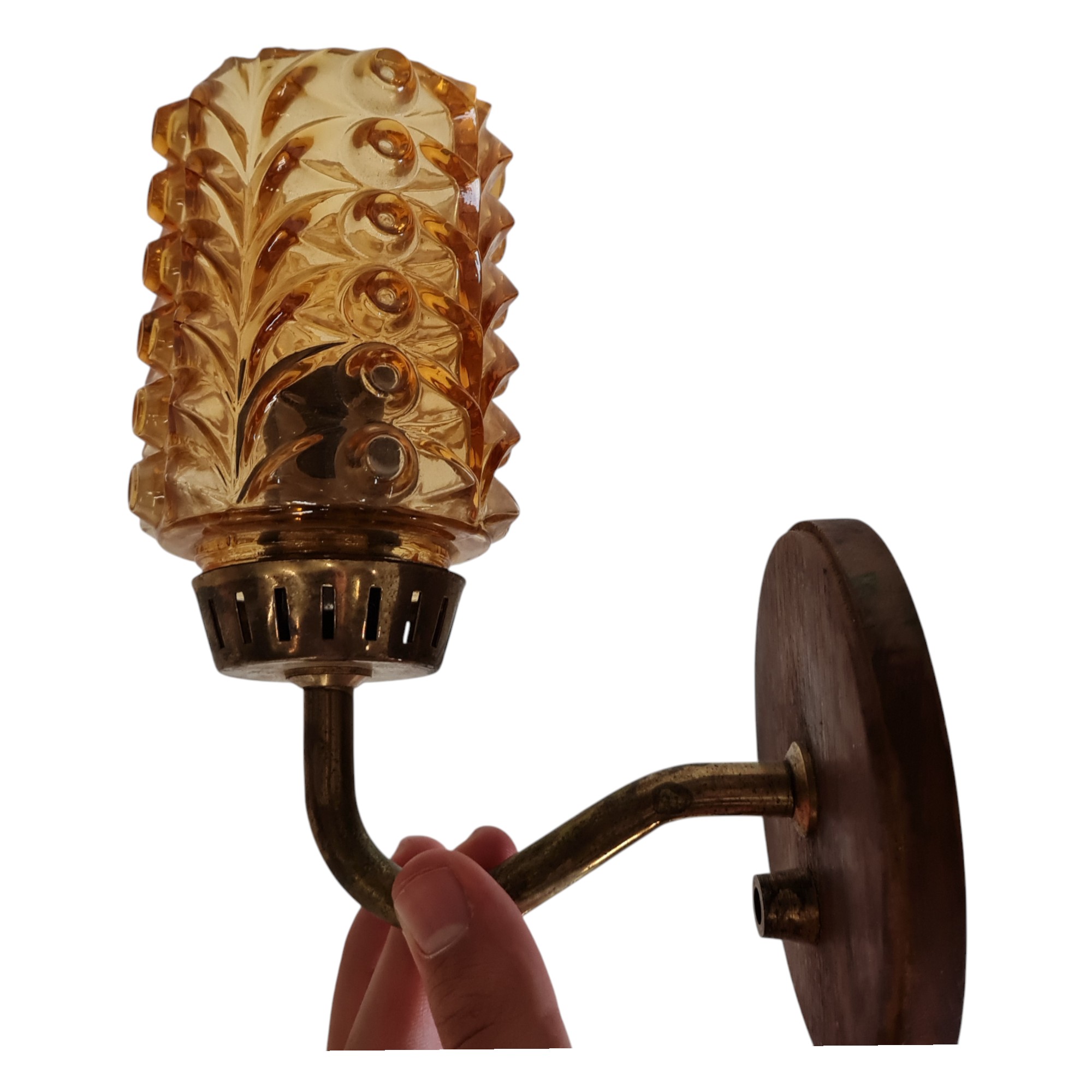 Lav retro væglampe | Dansk design | Gult glas og teak