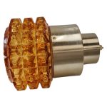 Flot retrolampe med orange glas som giver den helt rigtige hyggebelysning og monteret på en guldfarvet letmetal fatningsholder i dansk design.