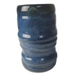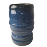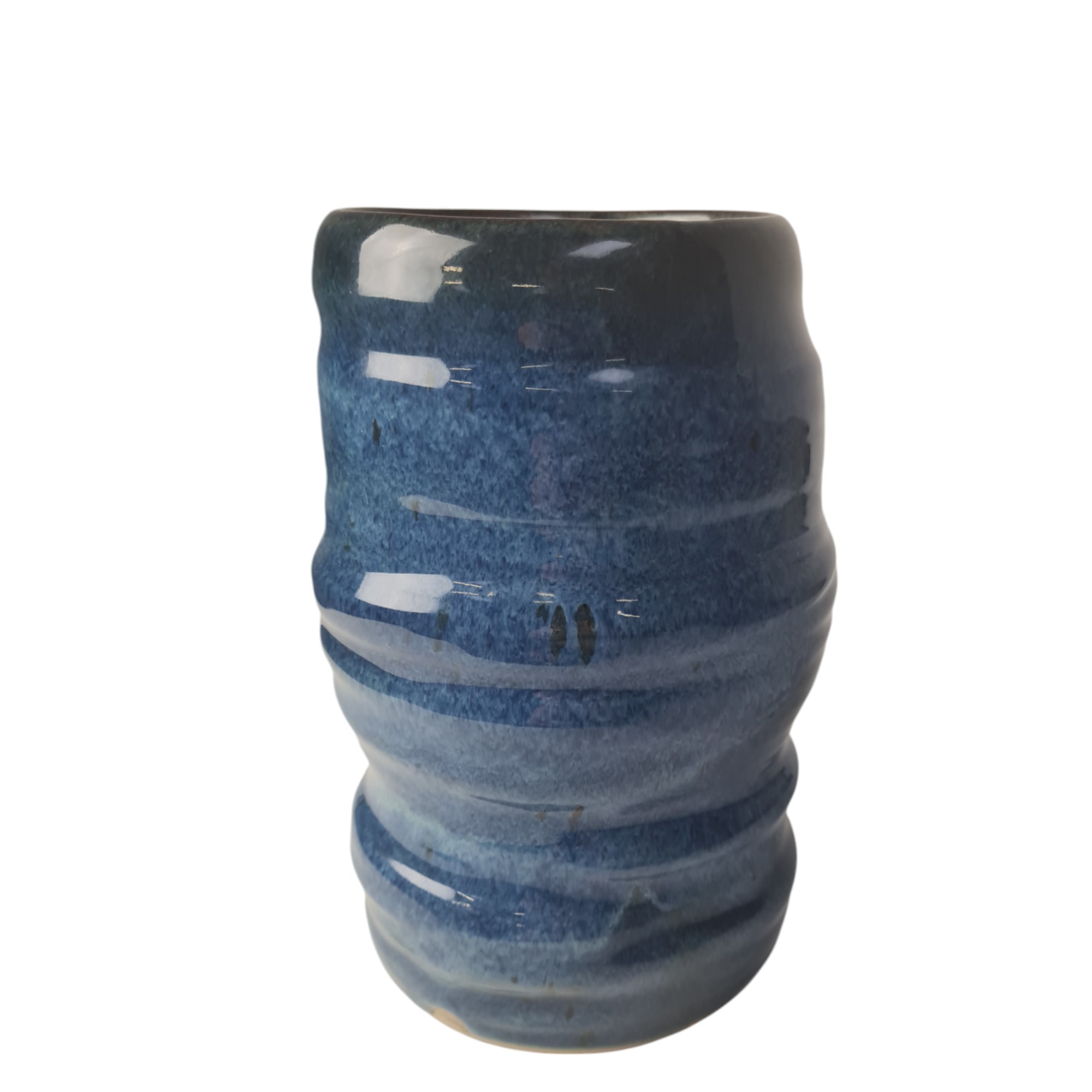 - Smuk organisk formet vase med en spændende glasur i blå med sorte nuancer.