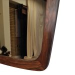Organisk og dog enkelt væghængt spejl med ramme i palisander og lavet hos Aarhus glas import og glassliberi A/S i 1950’erne.