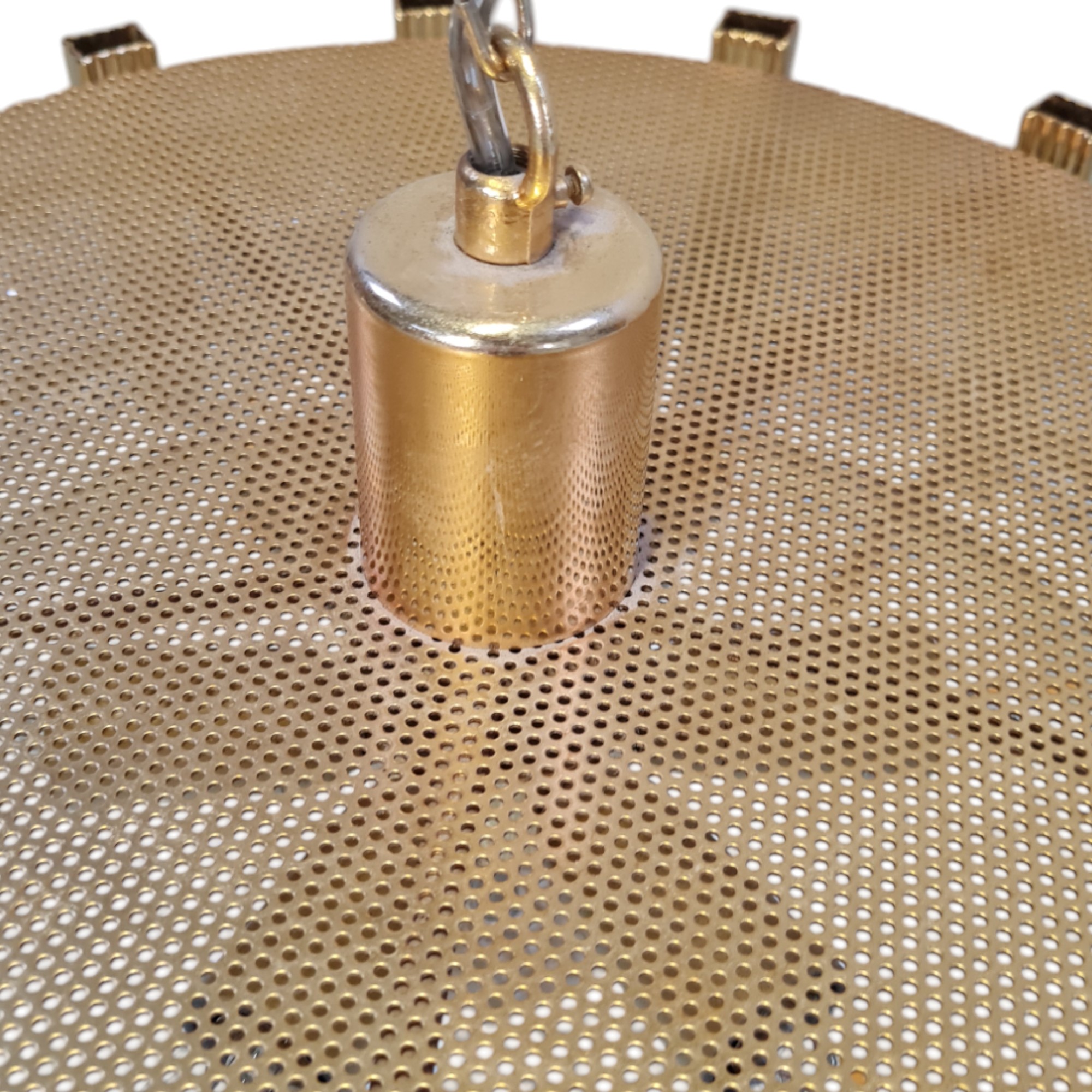Utroligt smuk pendel designet af Carl Fagerlund og fremstillet hos Orrefors i 1960’erne. Pendlen er udført i krystalglas og forgyldt metal, og kombinationen af materialer giver et varmt, blødt og indbydende lys, der skaber stemning og elegance i ethvert rum.