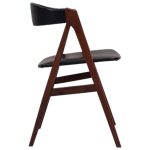Klassisk savbukkestol model 205 tegnet af Theodor Harlev for Farstrup Stolefabrik i 1958. Stolen er udført i teak og betrukket med sort kunstlæder.