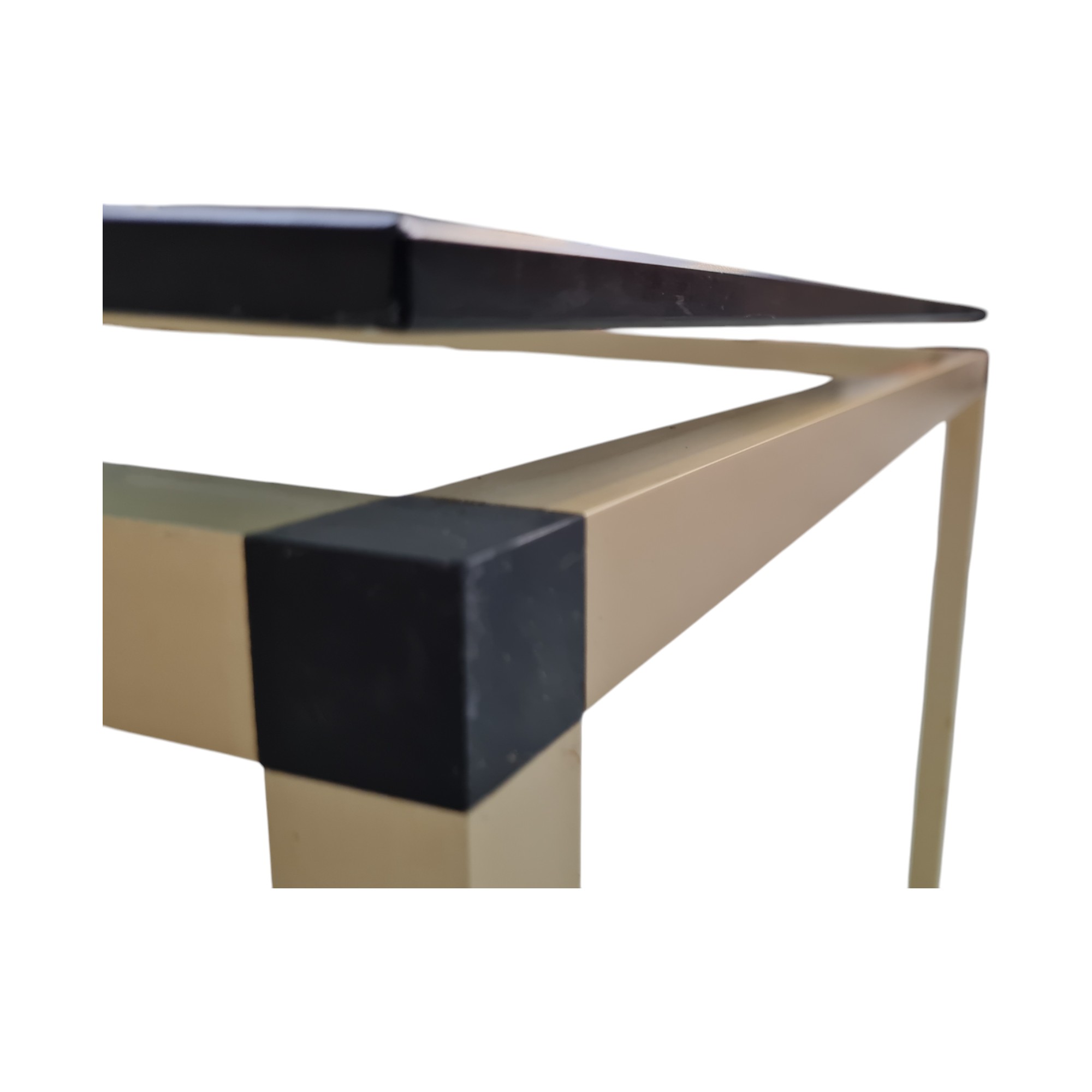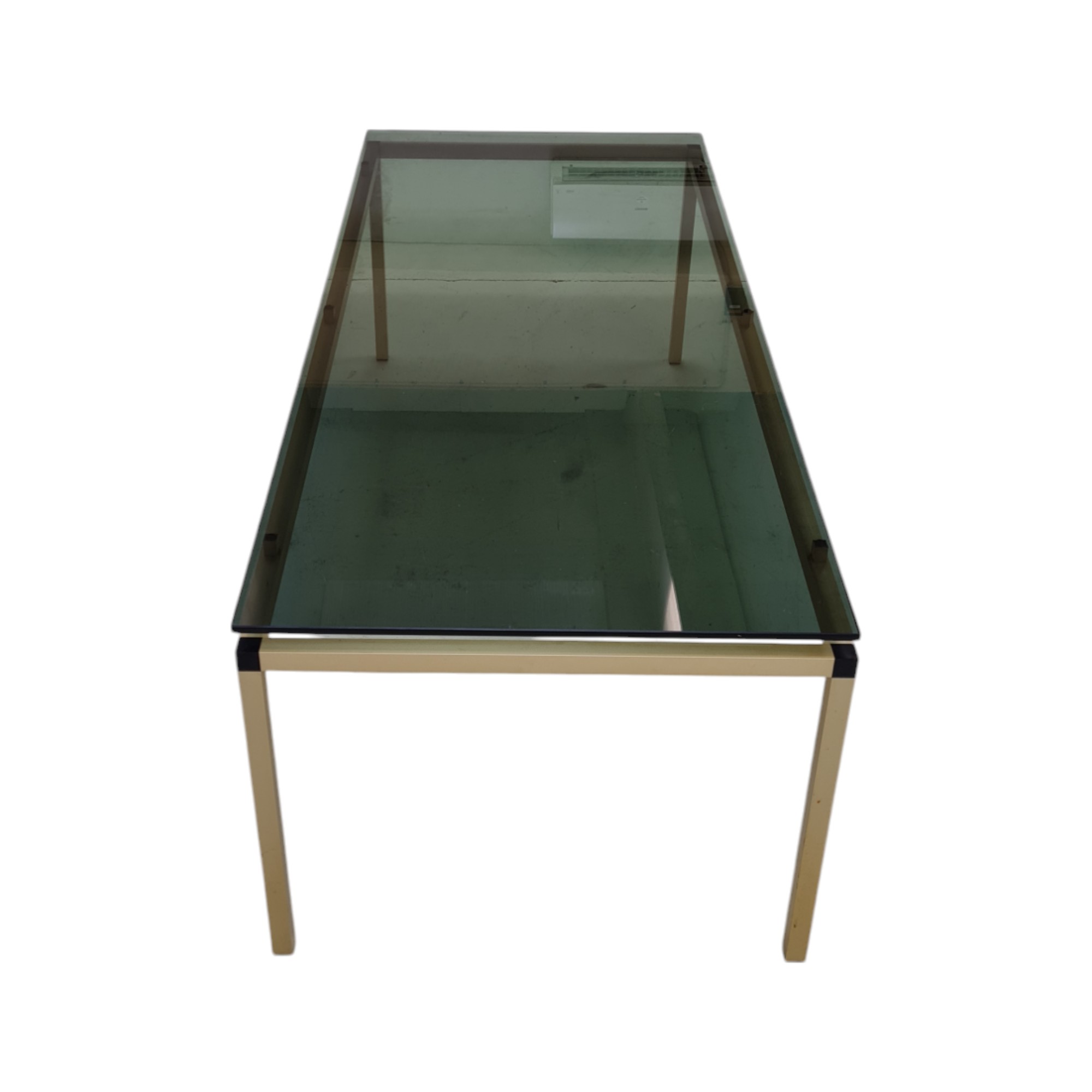 Sofabord med glasplade | Dansk design | Guldfarvet metal og røgfarvet glas