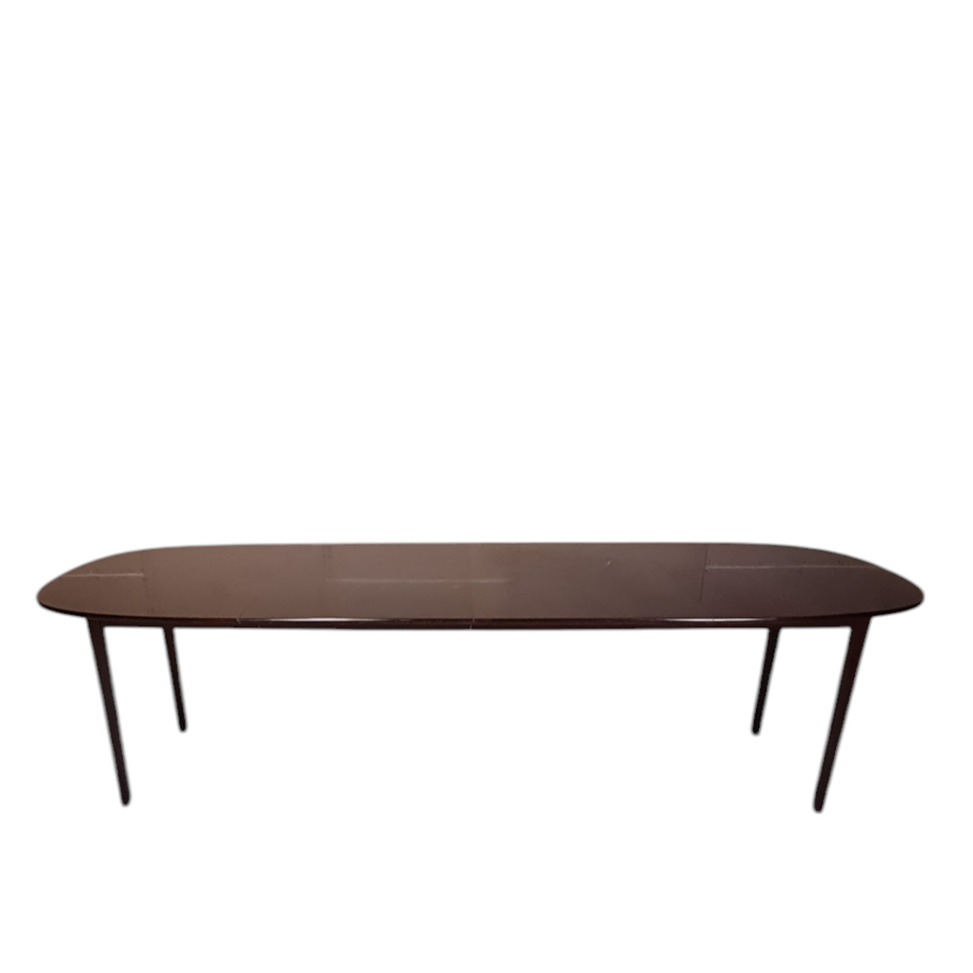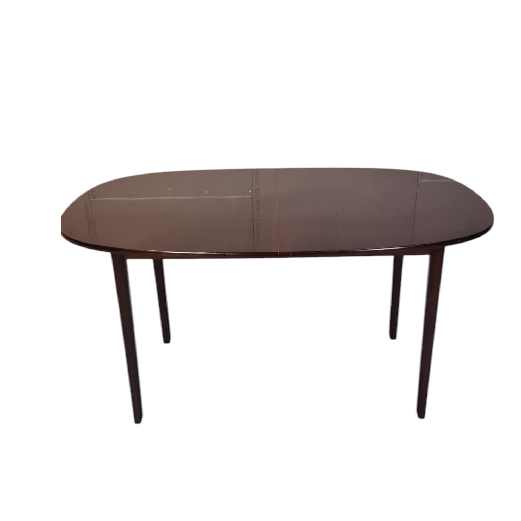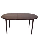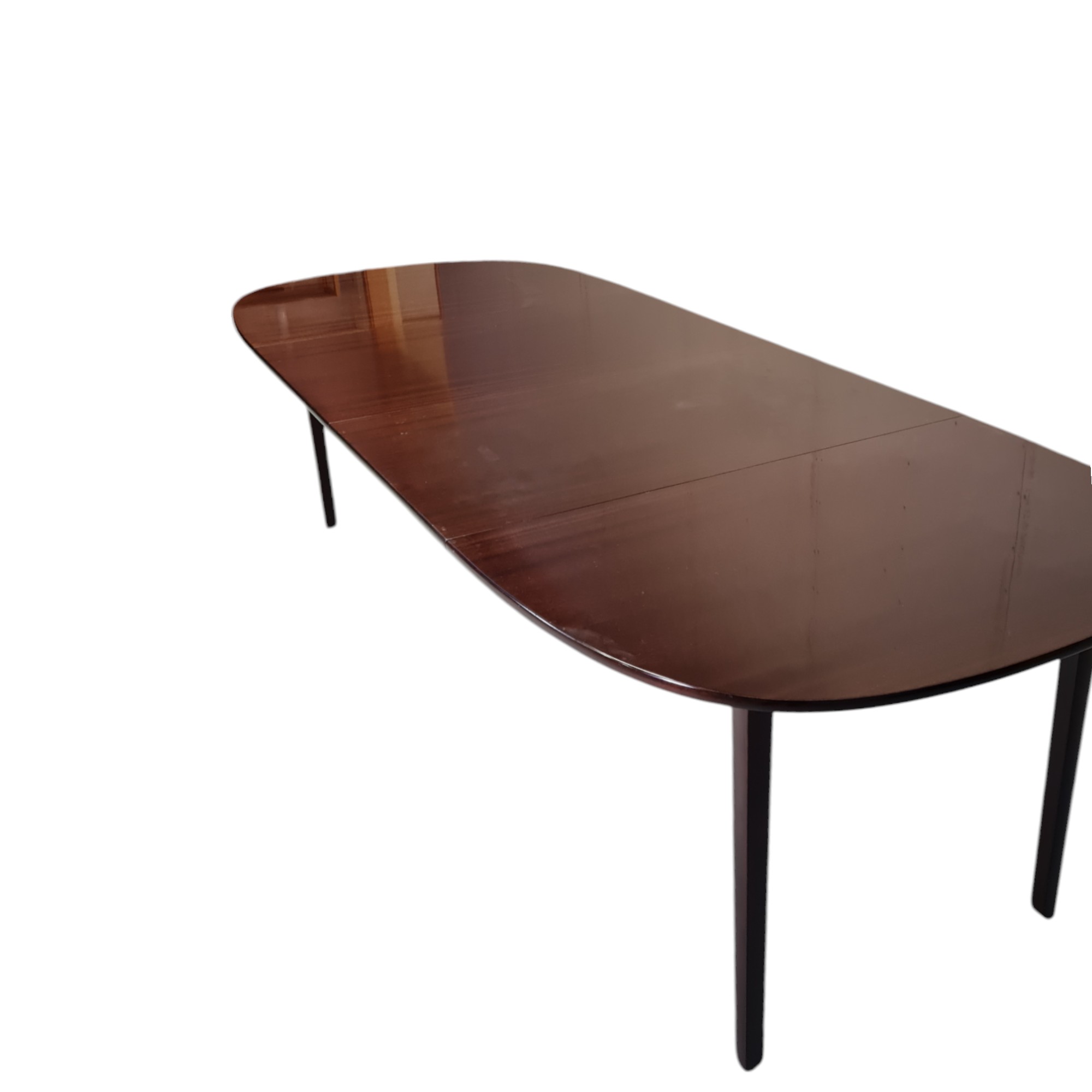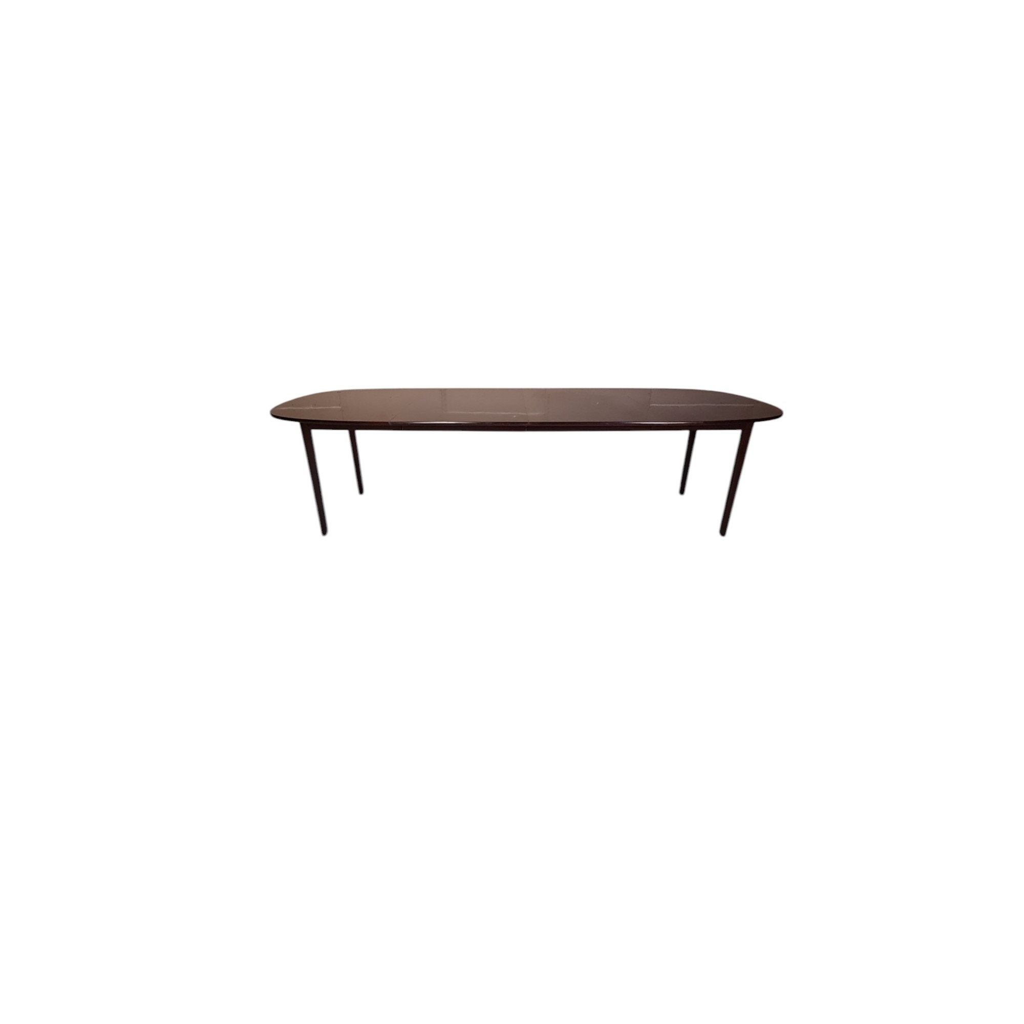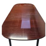 Spisebord med to plader fra serien Rungstedlund tegnet af Professsor Ole Wanscher og formgivet 1962. Udført i lakeret mahogni.