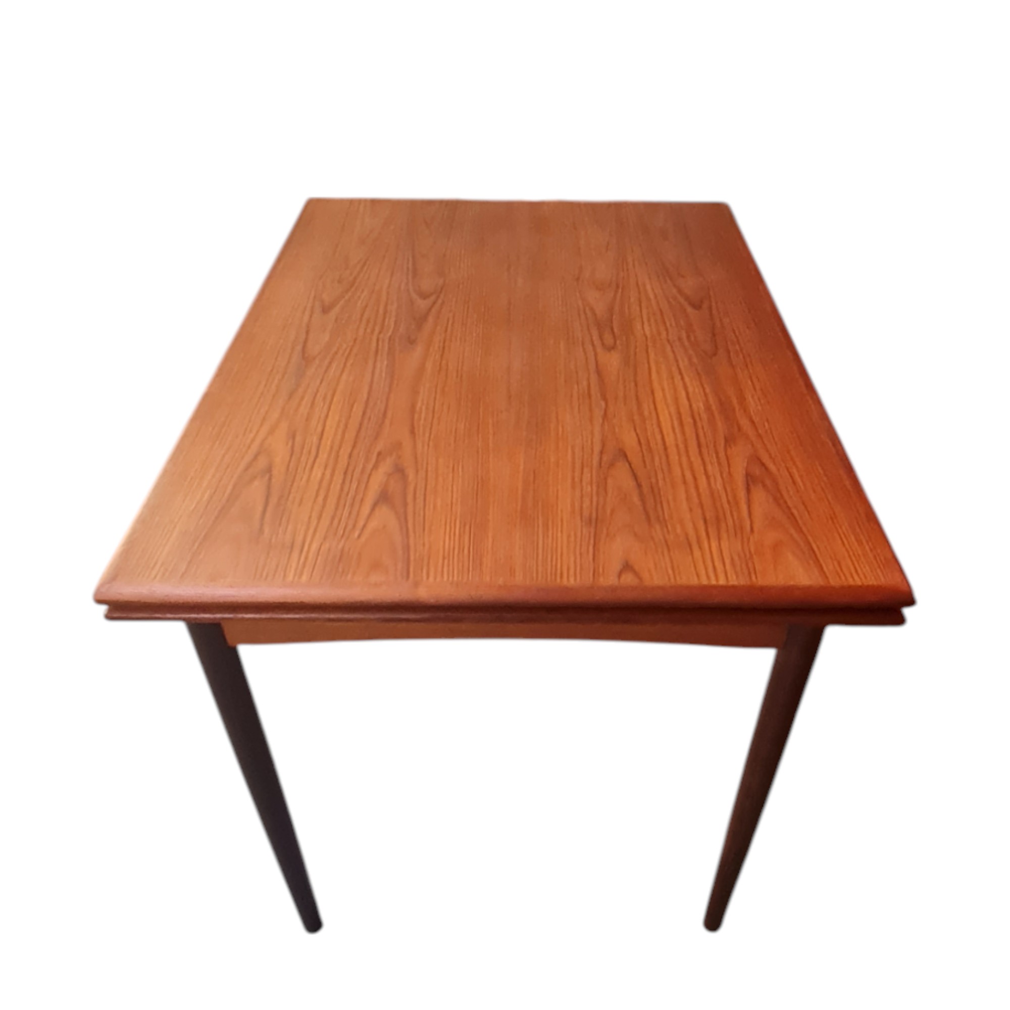 De to tillægsplader er diskret integreret og nemme at slå ud, hvilket gør bordet ideelt til både hverdagsbrug og middage med gæster. Et møbel, der med sin varme glød og solide konstruktion er et smukt eksempel på dansk møbelhåndværk.