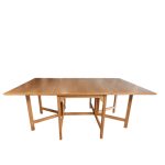 BM 71 biblioteksbordet er et smukt og funktionelt værk tegnet af Børge Mogensen i 1958 for Fredericia Furniture. Bordet er udformet med gateleg-funktion og udstråler den beskedne, men raffinerede æstetik, som kendetegner Mogensens tilgang til design: praktisk anvendelighed forenet med tidløs skønhed.