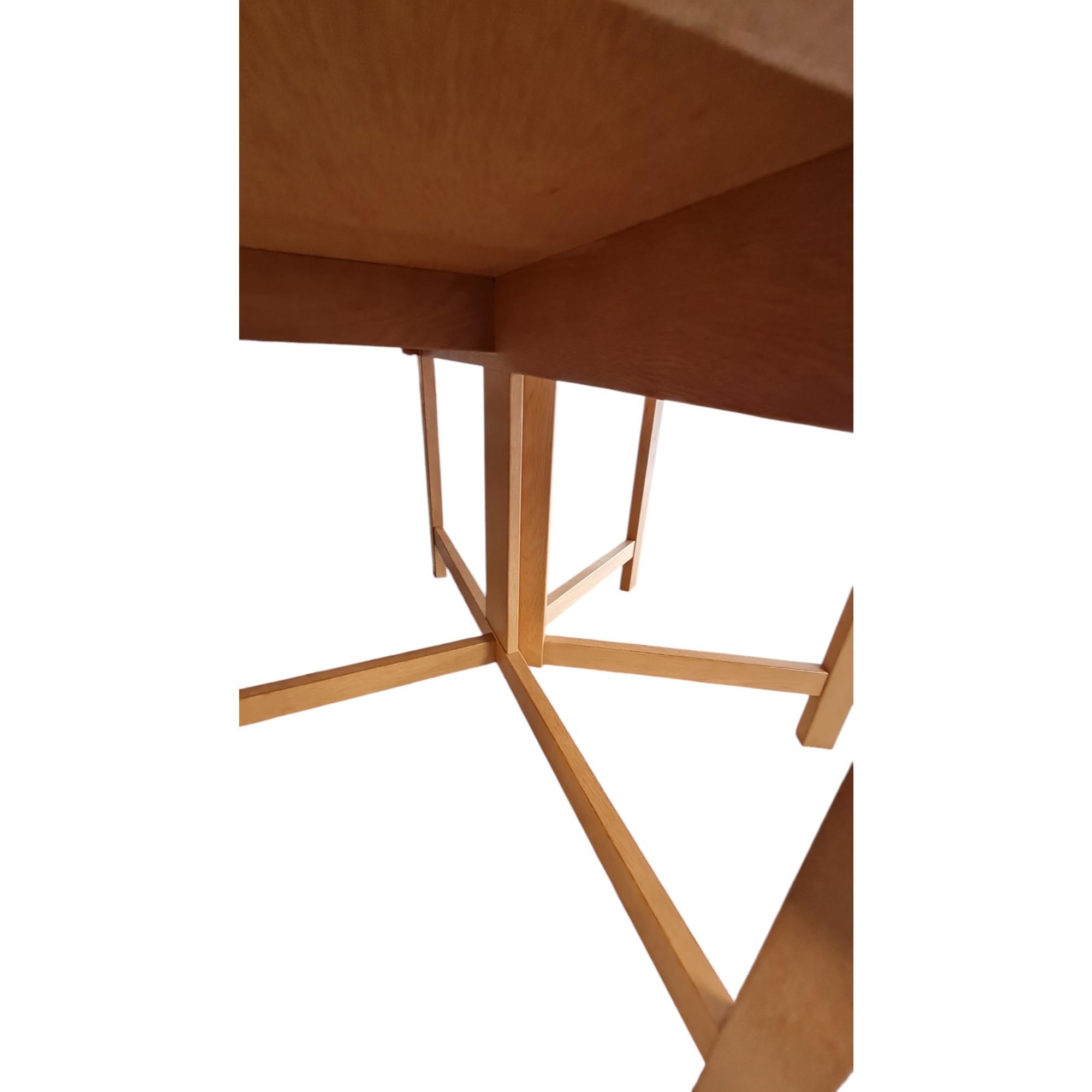 Bordet er udført i massivt egetræ med en fineret bordplade og fremstår i meget velholdt stand med kun få aldersrelaterede brugsspor som små mærker og ridser.