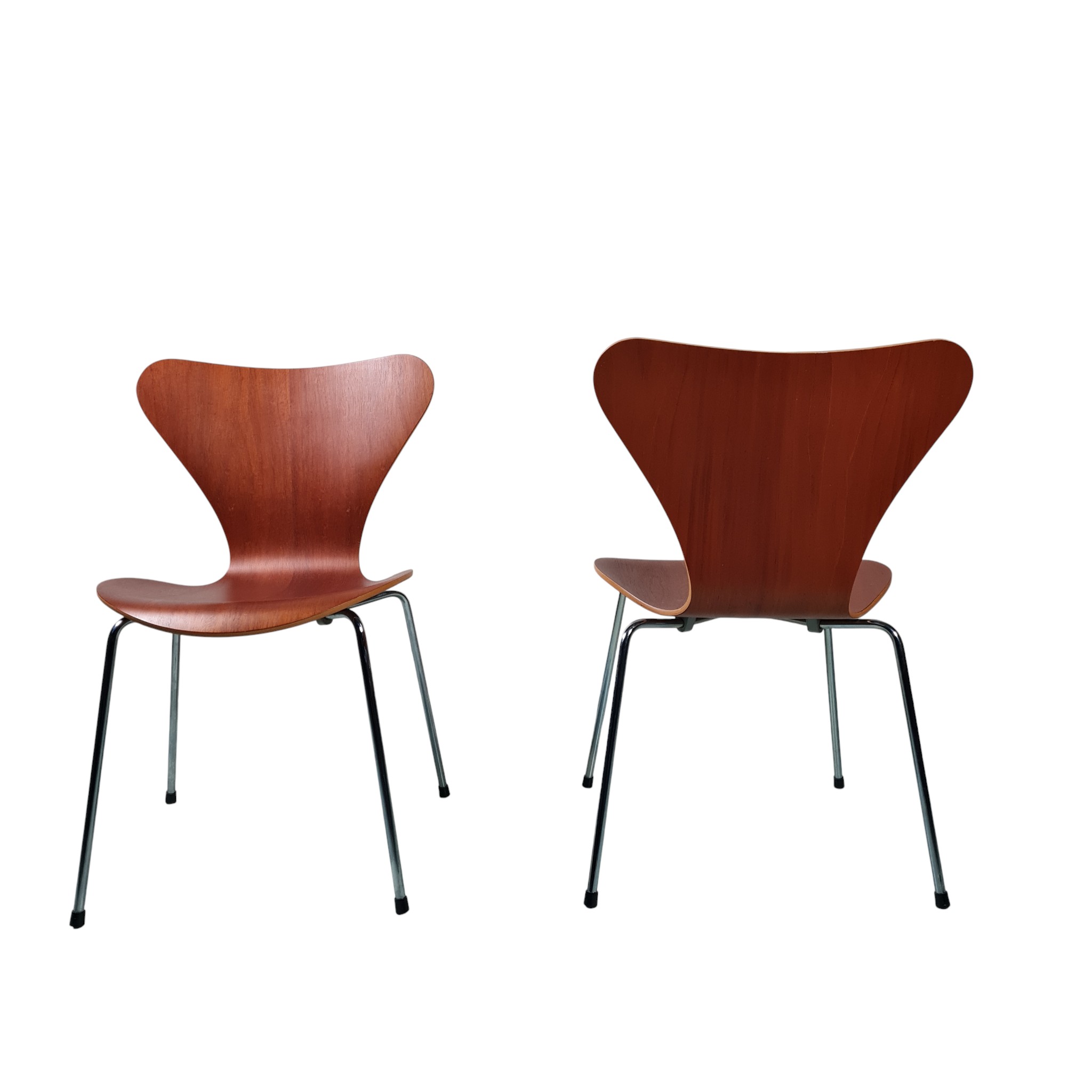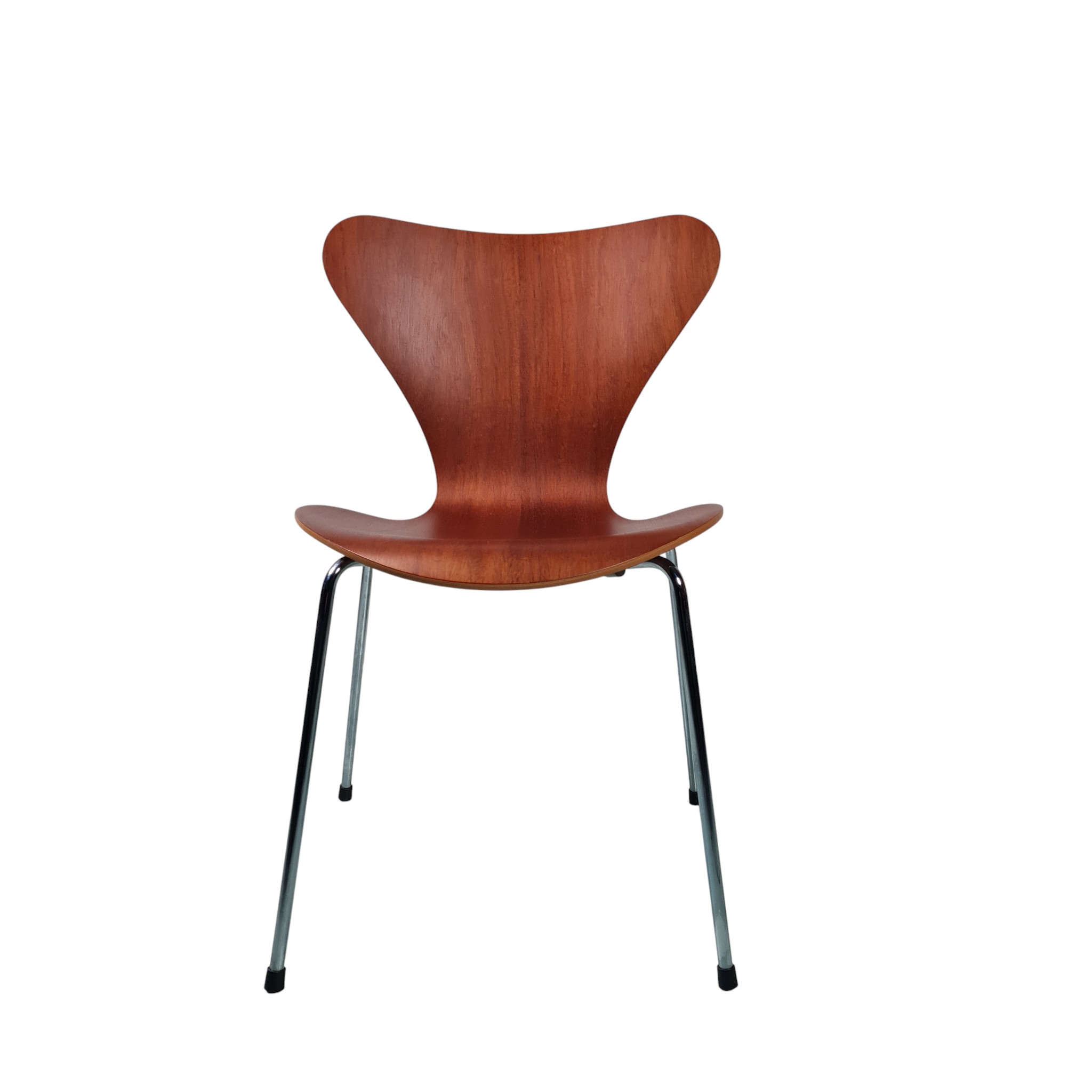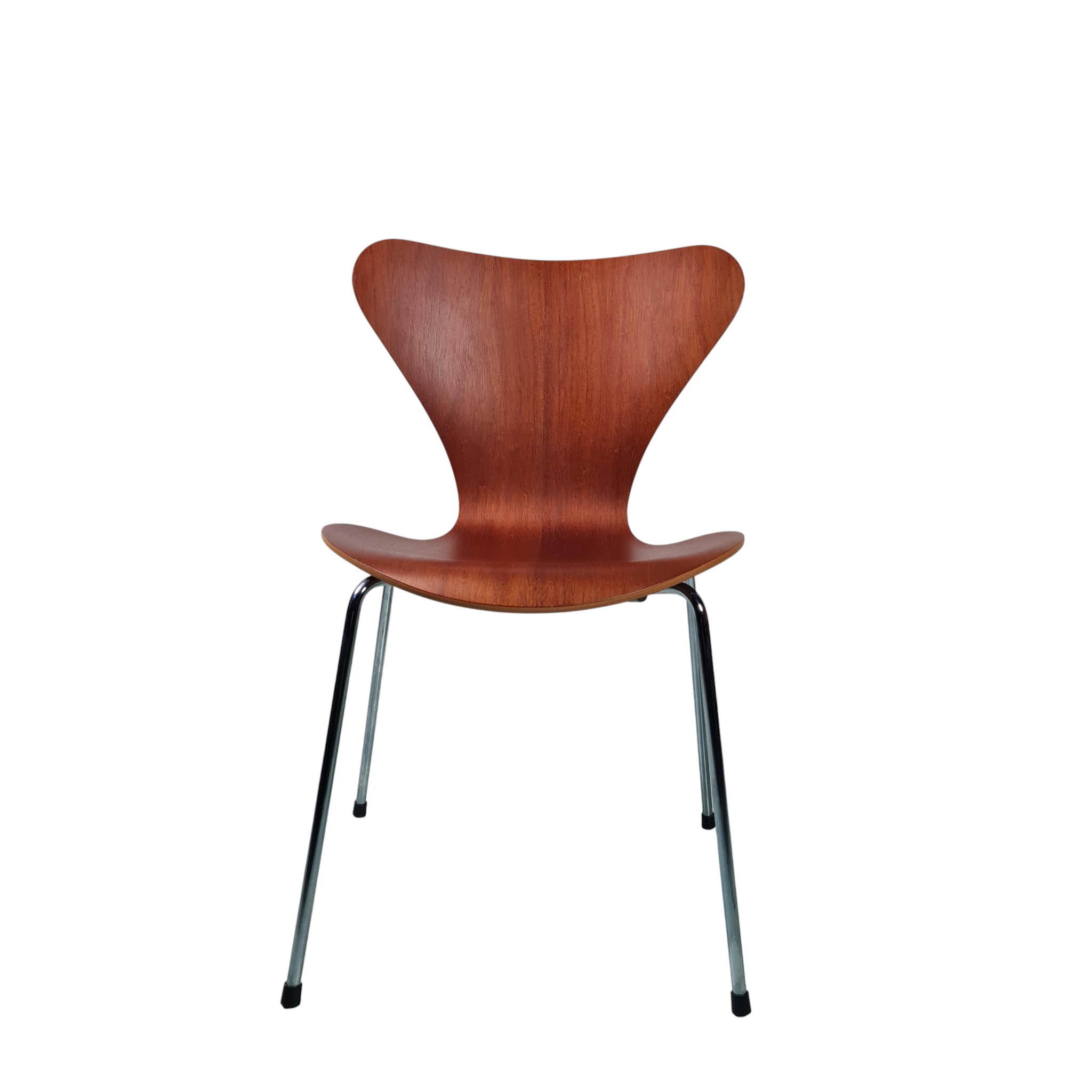 Den ikoniske og klassiske Stol model 3107 formgivet af Arne Jacobsen i 1955 i teak. Disse stole er fra 1992 og fremstillet hos Fritz Hansen.