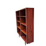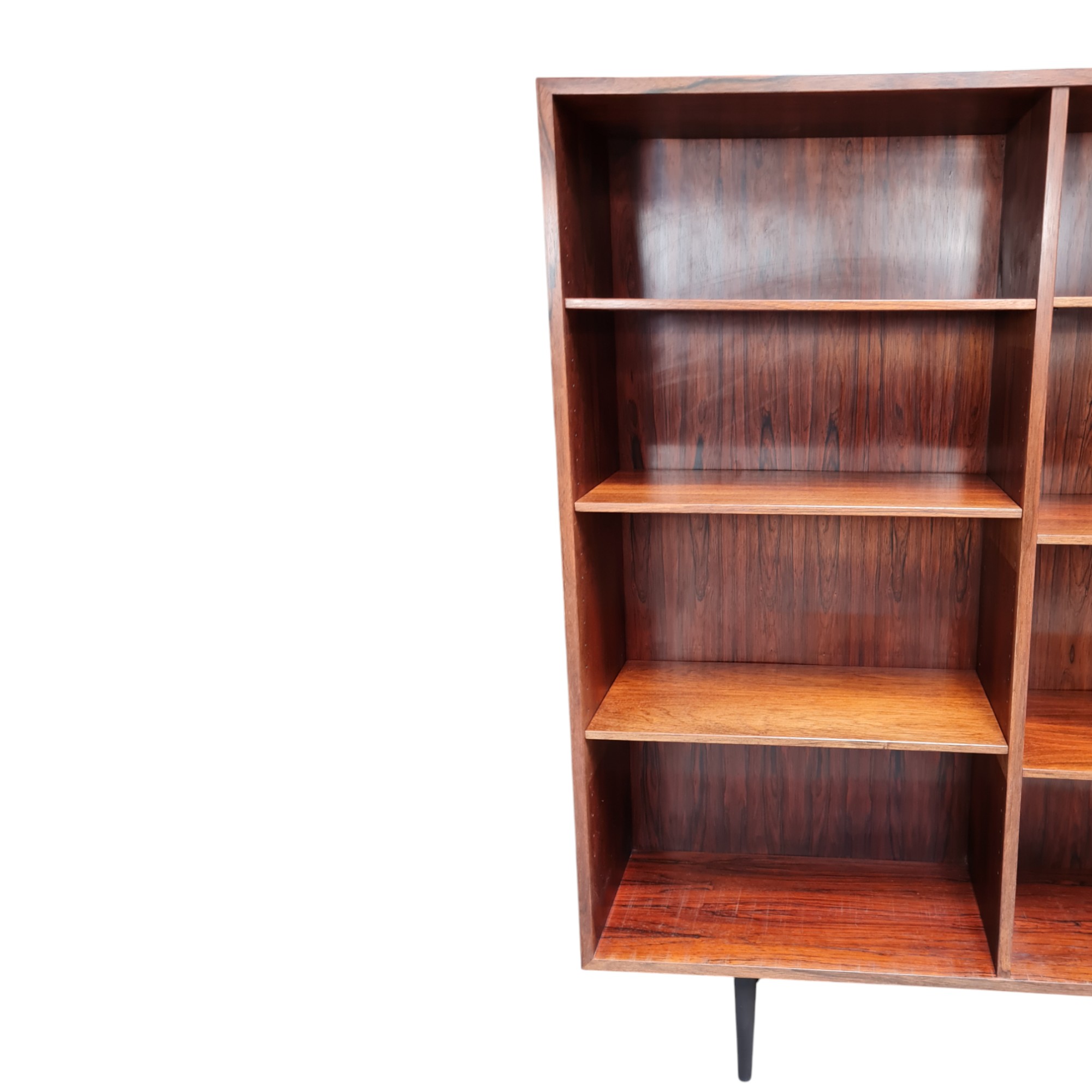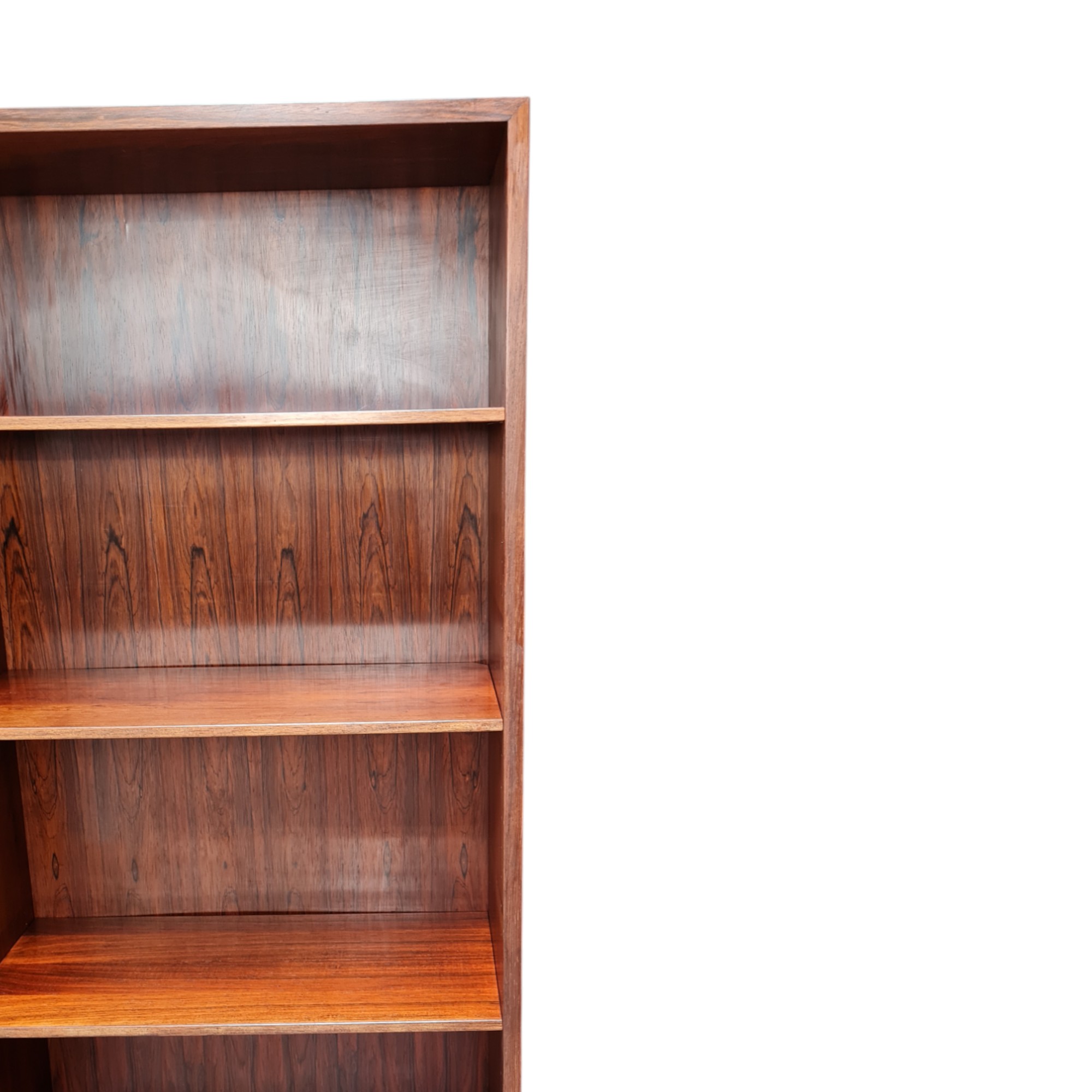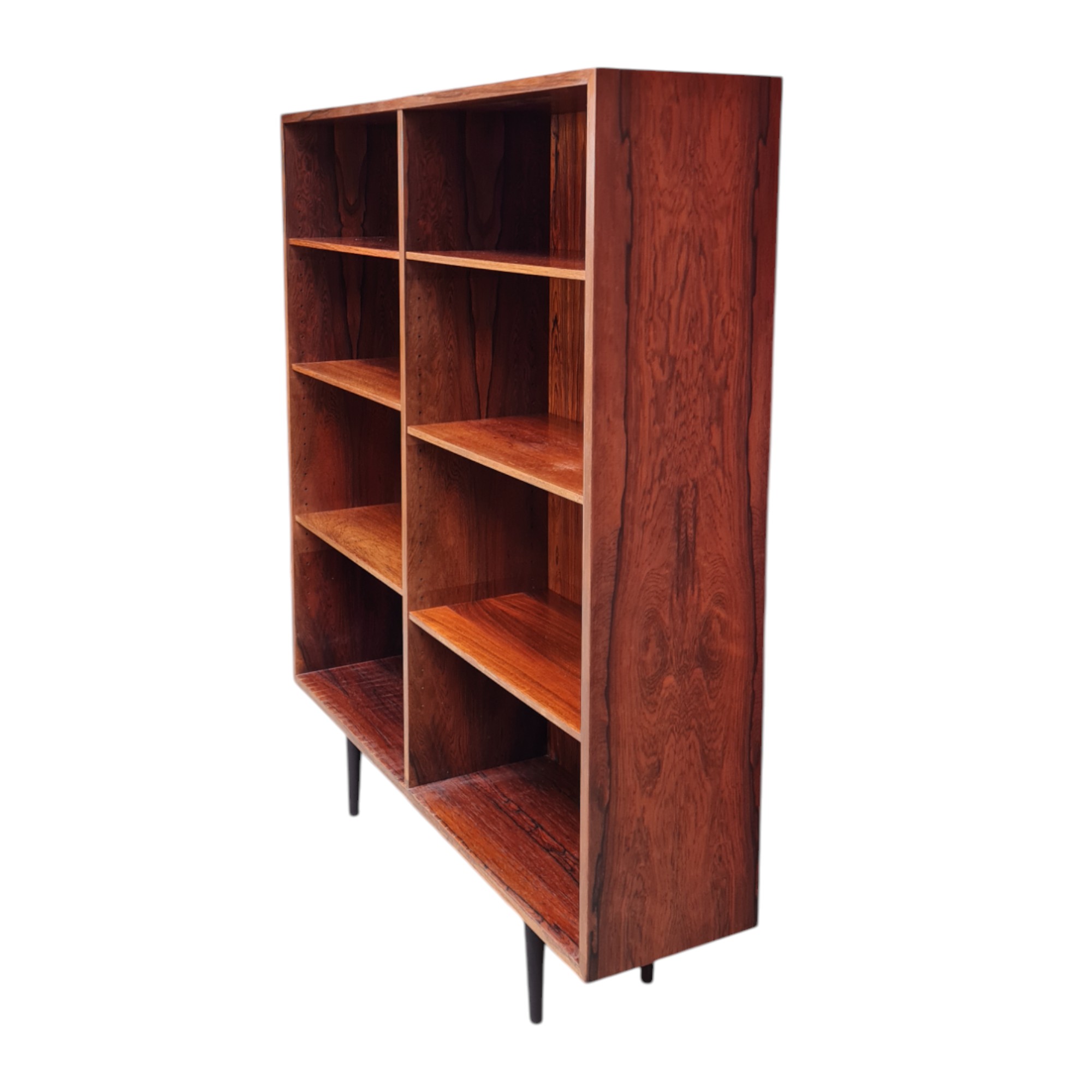 Elegant bogreol udført i smukt palisander (Dalbergia Latifolia), som giver et rigt og varmt farvespil. Designet af Gunni Omann og produceret af Omann Junior – et kvalitetsmøbel fra 1960’erne, der kombinerer funktionalitet og æstetik på fornem vis.
